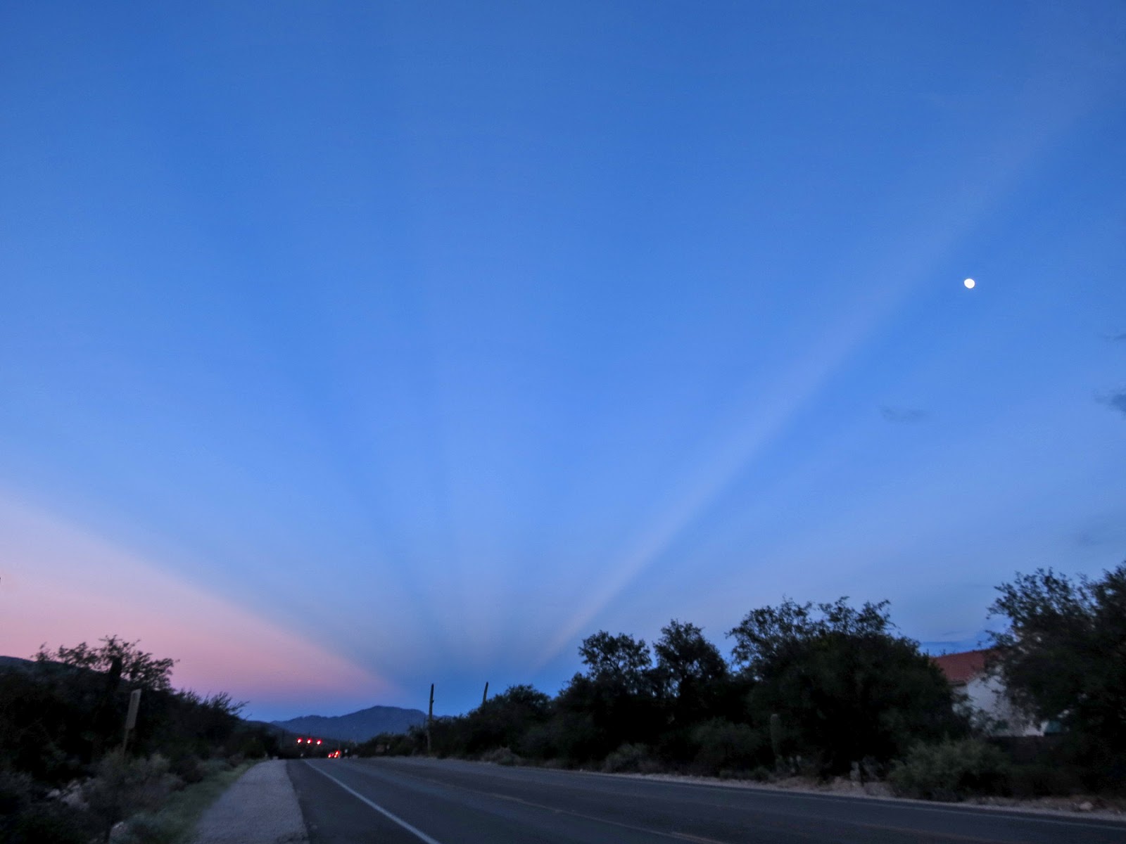 to the east where subtle rays appeared to converge opposite the setting sun.